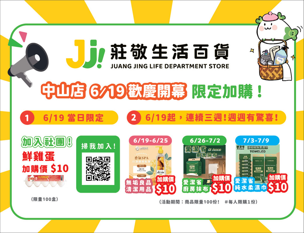 【莊敬生活百貨 永和中山店 6/19 盛大開幕】