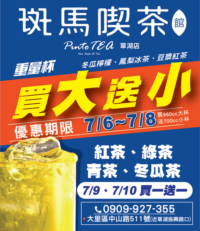 紅茶、綠茶、青茶、冬瓜茶 統統買一送一!