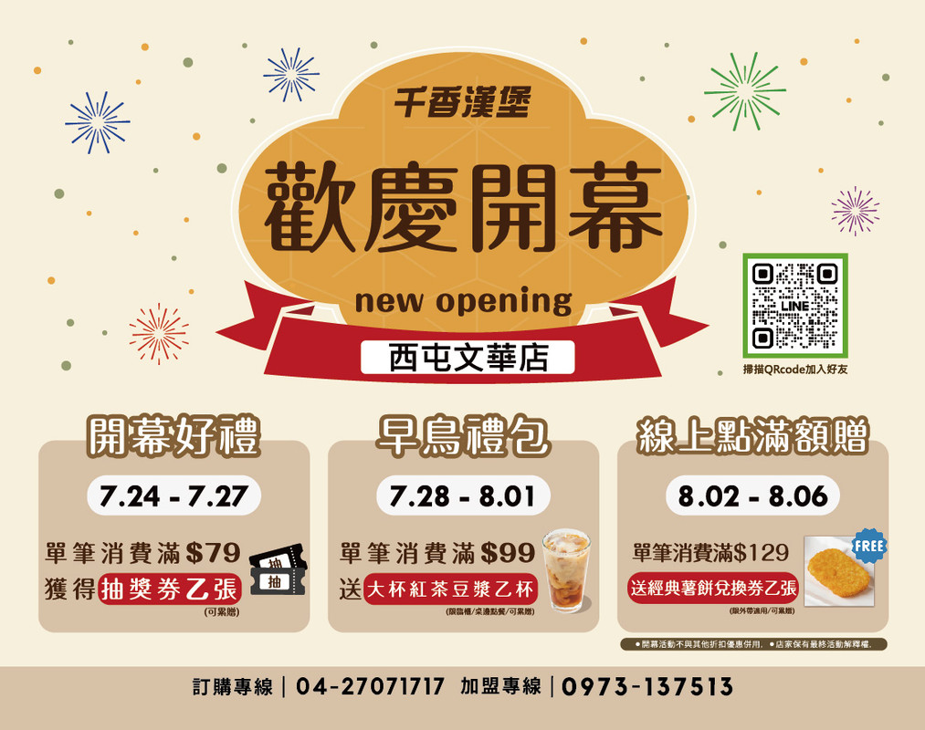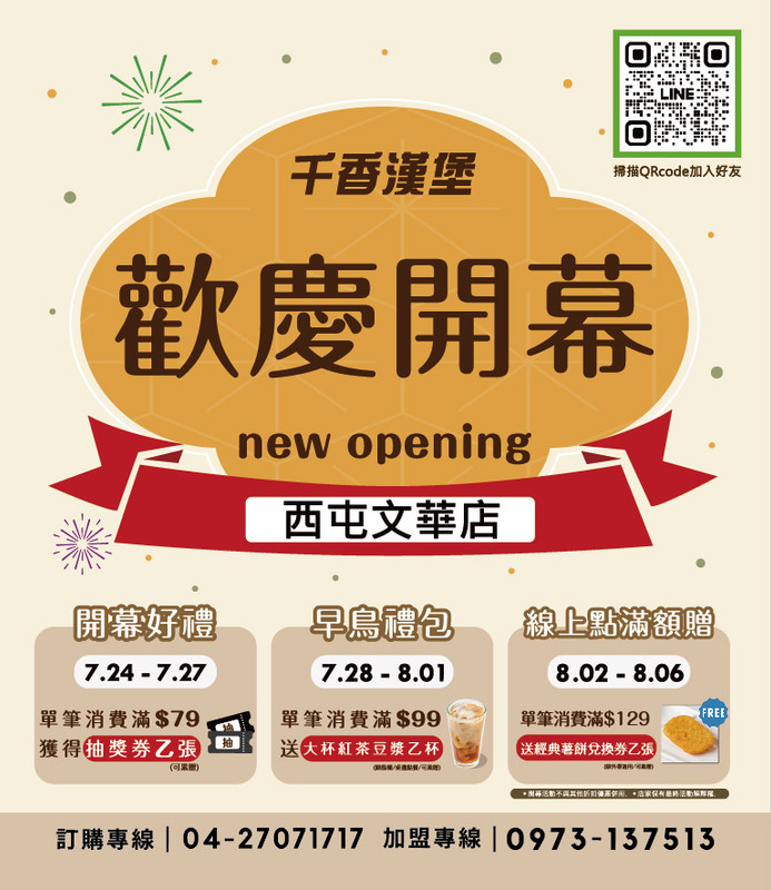 我們來了!千香漢堡全新據點「西屯文華店」正式開幕,三波好康優惠等你來搶!