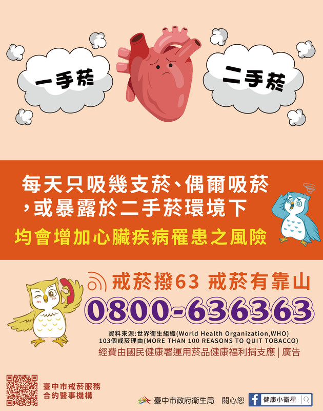 ・不論是一手菸還是二手菸,都會增加心臟病與中風風險。