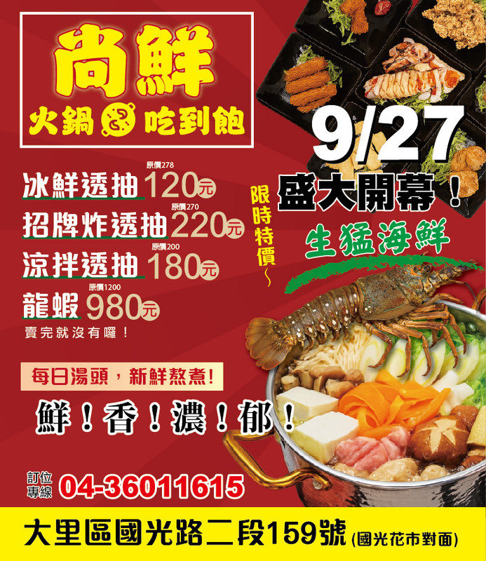 龍蝦 原價1200 ➤ 特價980元(賣完就沒囉!)