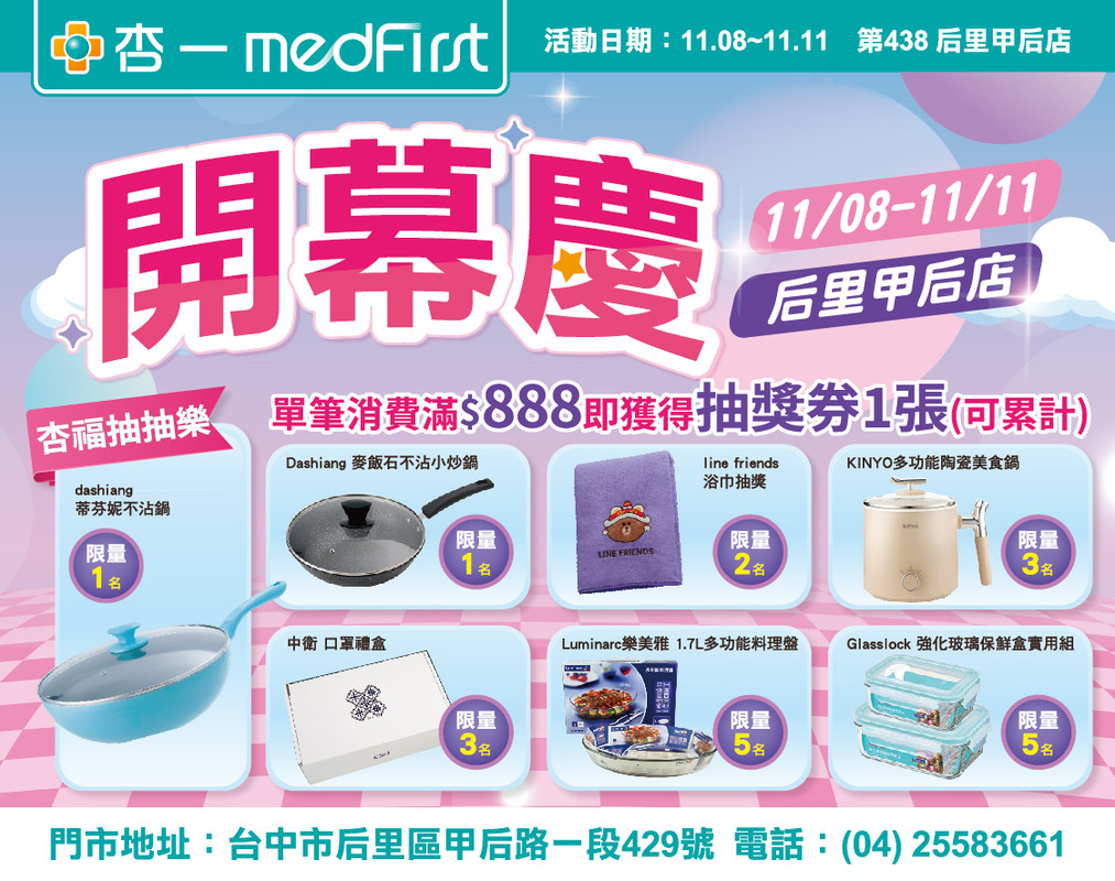 單筆消費滿 $888 即可獲得抽獎券 1 張(可累計)