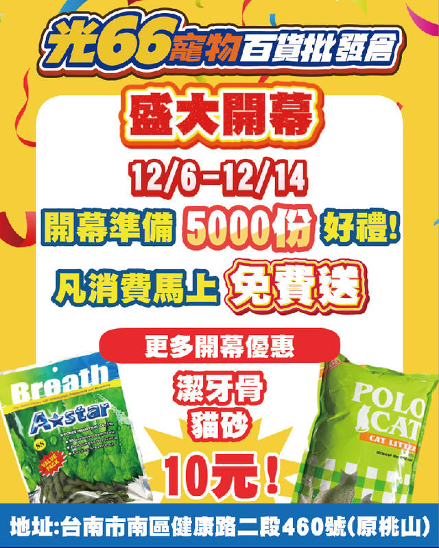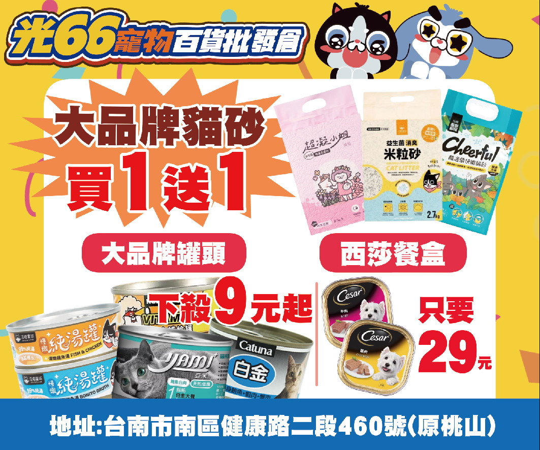 光66寵物百貨批發倉 登場!台南南區全新開幕!