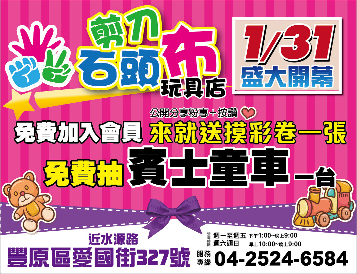 | 剪刀、石頭、布玩具店 開幕啦!開幕抽好禮! #開幕廣播車 #活動廣告車 #廣告服務宣傳