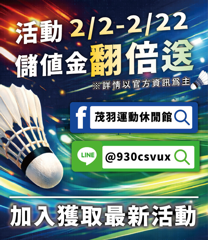 2/9-2/13只要加入會員預約場地,即可免費使用球場