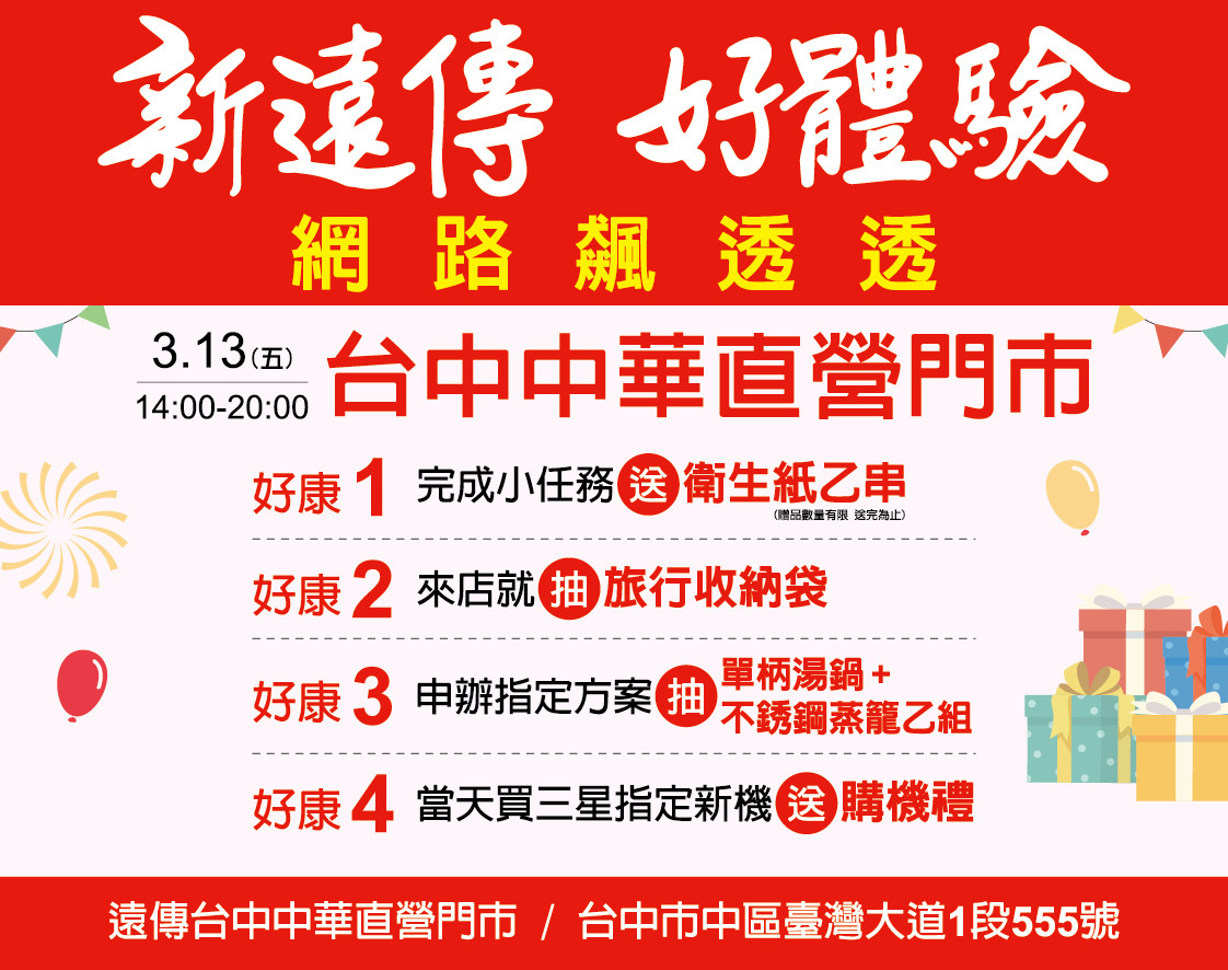 遠傳台中中華直營門市 3/13 派對送好康