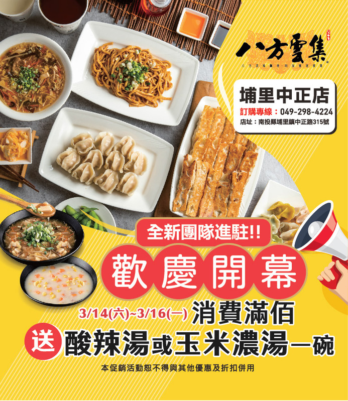 八方雲集 埔里中正店 全新經營團隊 歡慶開幕!