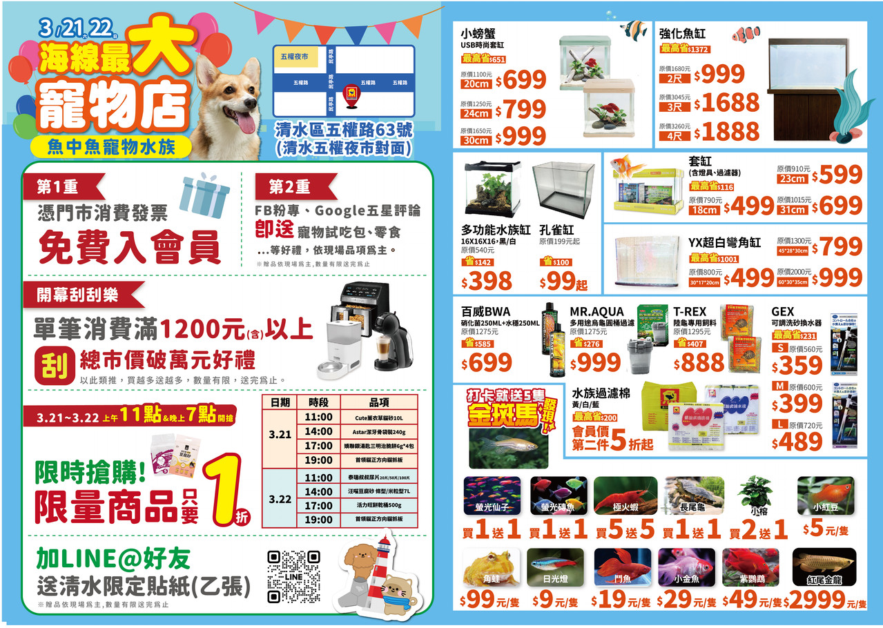海線最大寵物店開幕慶!魚中魚寵物水族 清水店