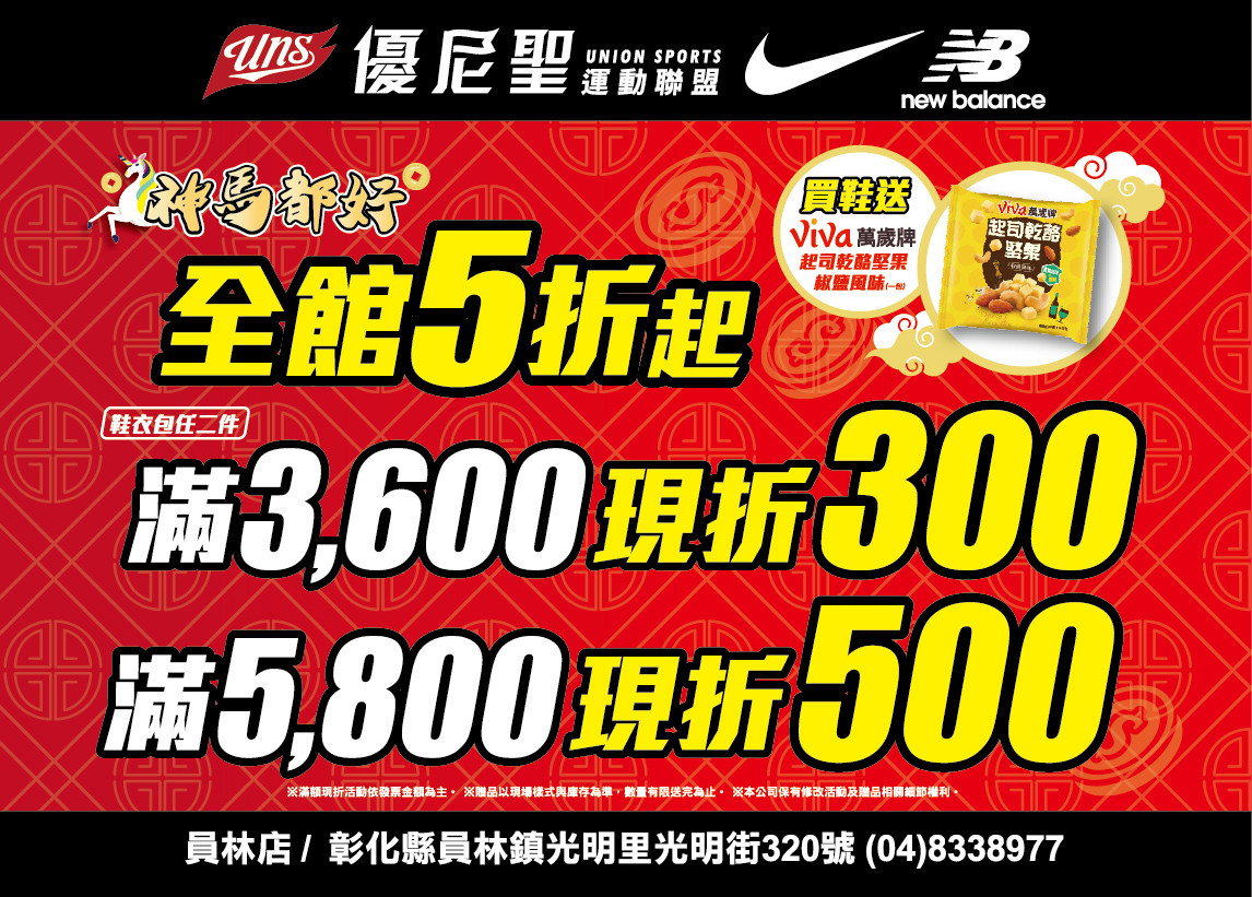 快來優尼聖運動聯盟員林店,搶好康趁現在!