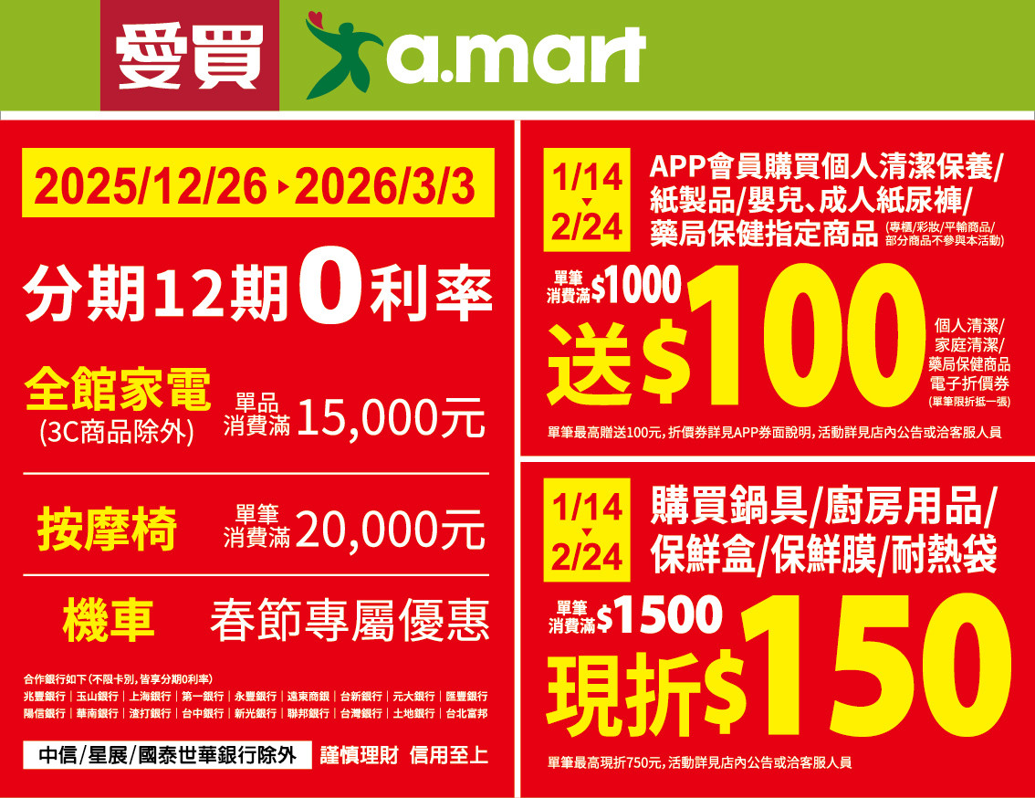 【愛買 a.mart 水湳店 歡慶開幕 × 年末超強優惠】會員 9 折日|歲末傳愛 預訂年菜 #活動...