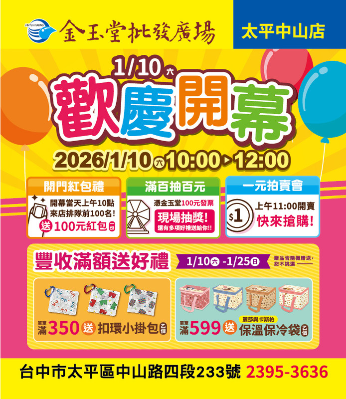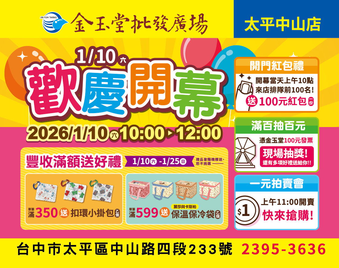【金玉堂批發廣場|太平中山店 盛大開幕】